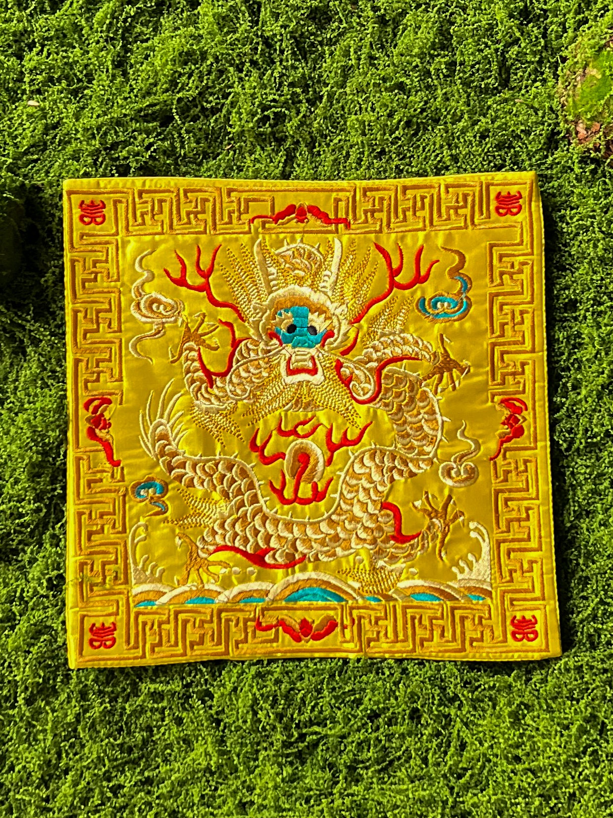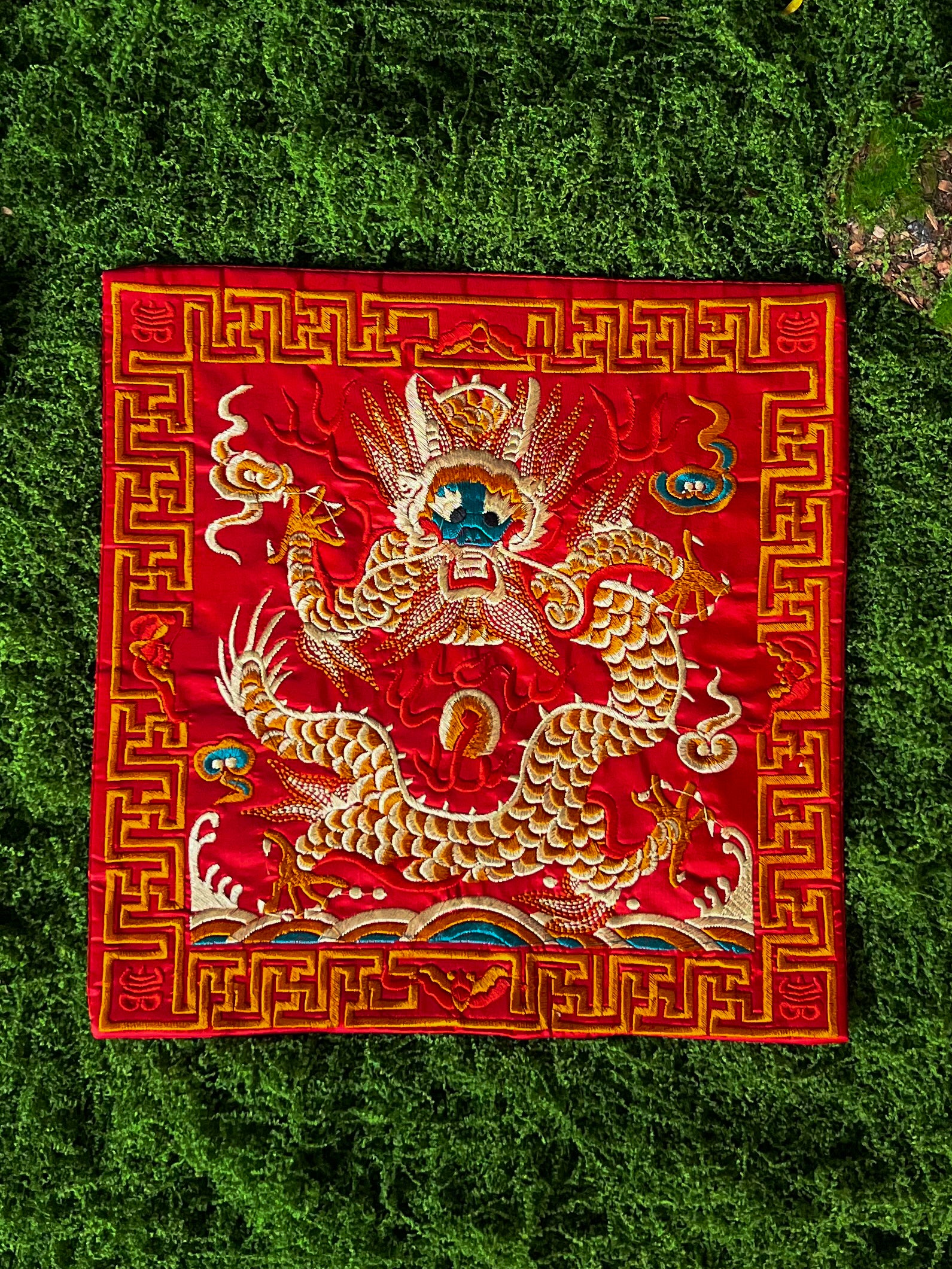 Estos dragones chinos estan bordados en una tela de buena calidad, tiene un orificio para rellenarse y hacerse cojin o para solo poner en el altar.