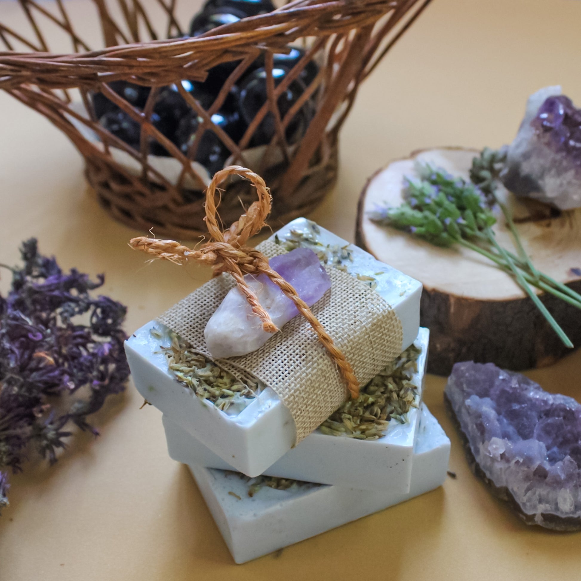 Este jabon magico combina la magia de la amatista, lavanda, toronjil, aliados perfectos para proteger tu mente, ideal para personas con sensibilidad a las energias, tarotistas y brujas/brujos que practiquen todo tipo de mancias.